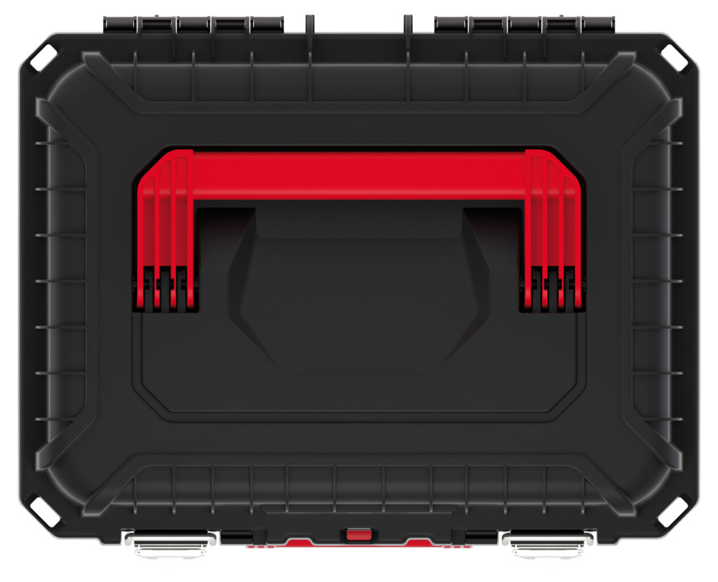 A láda különlegessége a nyolc kivehető válaszfal, amely testre szabható tárolóteret biztosít, valamint a fedélben található szerszámtartó. A horganyzott fém csatok és a tömör tömítés garantálják a szerszámok biztonságos védelmét a külső hatásokkal szemben.