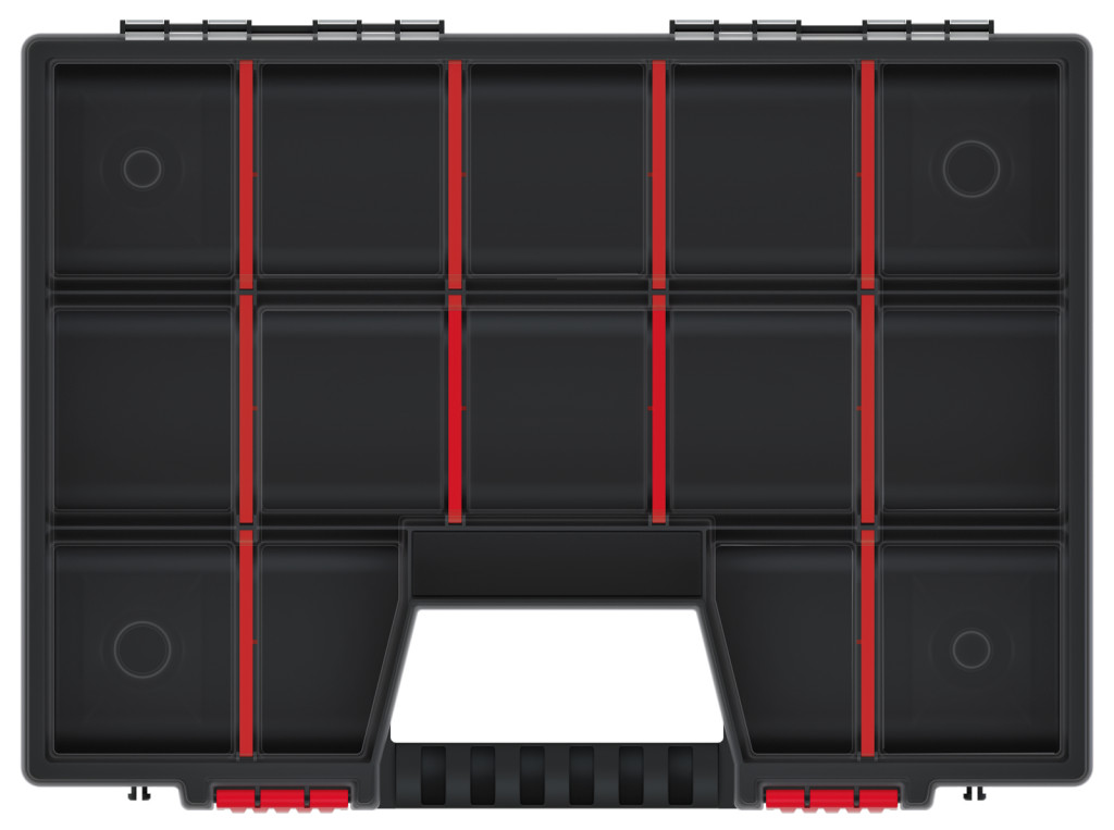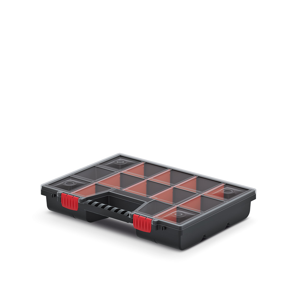 A Kistenberg NOR 40 szerszámrendező ideális megoldást kínál a műhelyben található szerszámok és alkatrészek rendszerezett tárolására. Az átlátszó polipropilén fedél azonnal láthatóvá teszi a tárolt eszközöket, míg a 10 kivehető rekesz maximális rugalmasságot biztosít a különböző méretű alkatrészek tárolásához.