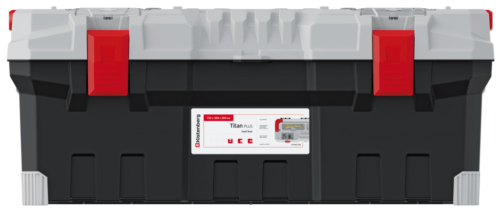 A Titan Plus 75 szerszámosláda a professzionális szerszámtárolás új szintjét képviseli. A masszív polimer konstrukció és az elasztomer sarokvédők maximális tartósságot biztosítanak, míg a hosszú alumínium fogantyú kényelmes szállítást tesz lehetővé.