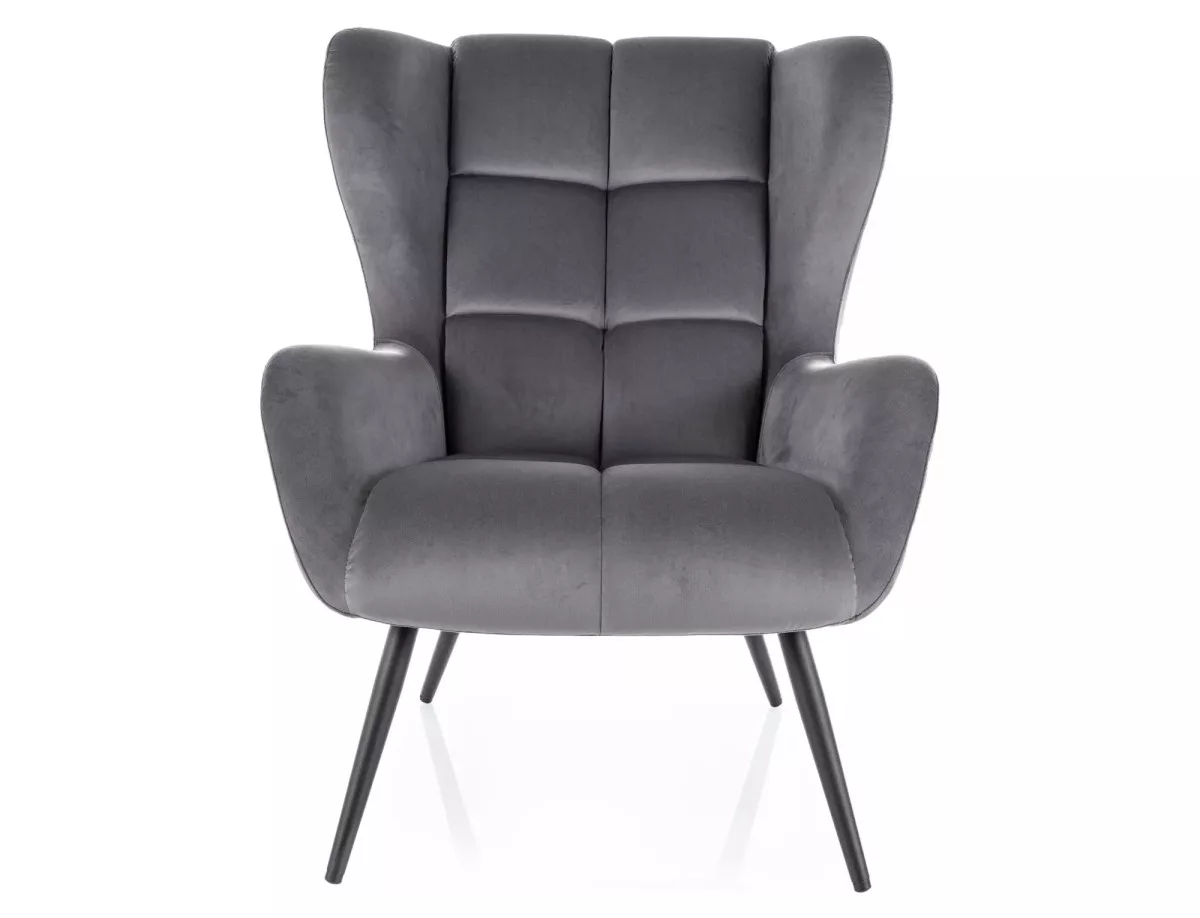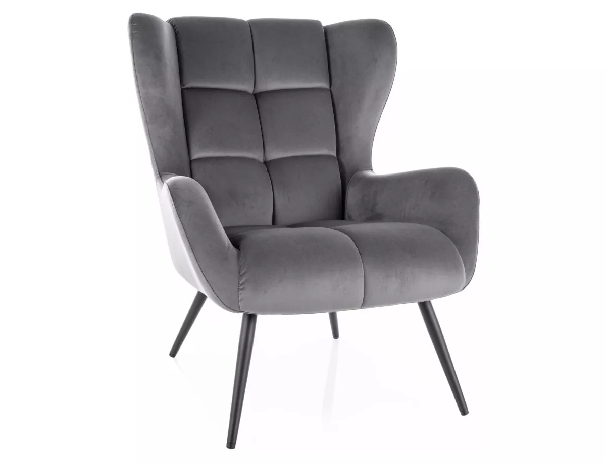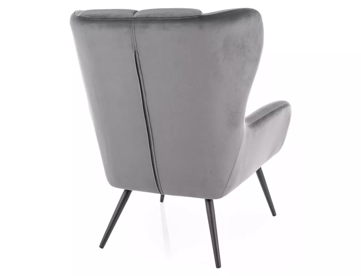 Louis Velvet Füles Fotel Szürke Bársony Fekete Fém Lábakkal