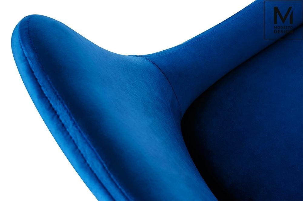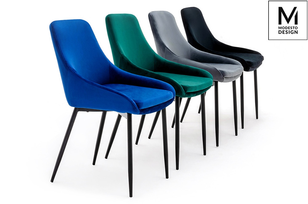 A MODESTO CLOVER étkezőszék a modern design és a kényelem tökéletes ötvözete. A szék ergonomikus kialakítású ülőfelülete és háttámlája puha, sötétkék bársonnyal van kárpitozva, amely nem csak esztétikus megjelenést, de kivételes komfortérzetet is biztosít.