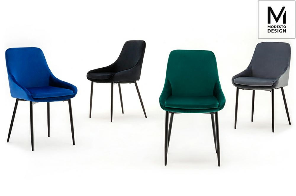 MODESTO CLOVER Sötétkék Bársony Étkezőszék Fekete Fém Lábakkal