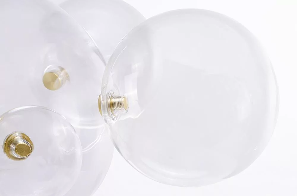 A Capri 6 függőlámpa egy lenyűgöző világítótest, amely hat különböző méretű üveggömböt kombinál egy harmonikus kompozícióban. A kézzel készített üveggömbök között egy arany, szálcsiszolt alumínium rúd húzódik, amely elegáns kontrasztot teremt az átlátszó üveggel.