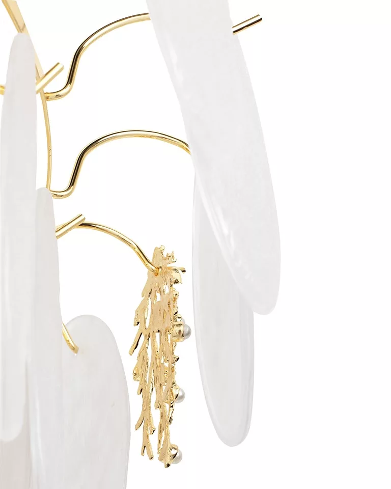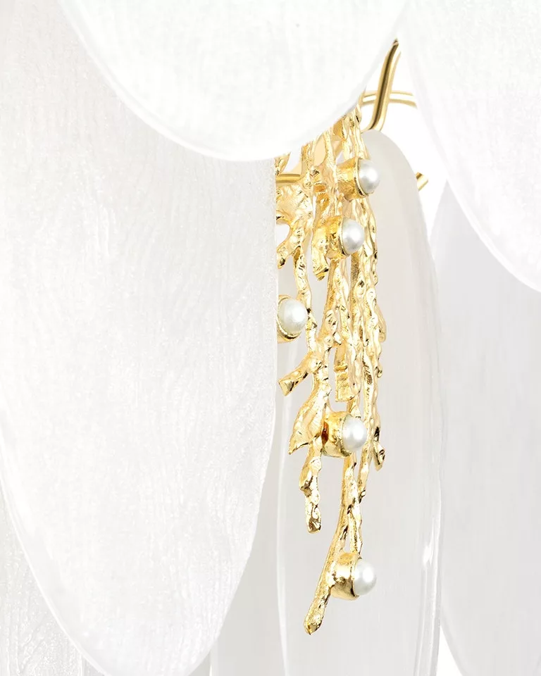 • Egyedi, művészi dizájn fehér üveg és arany fém kombinációjával