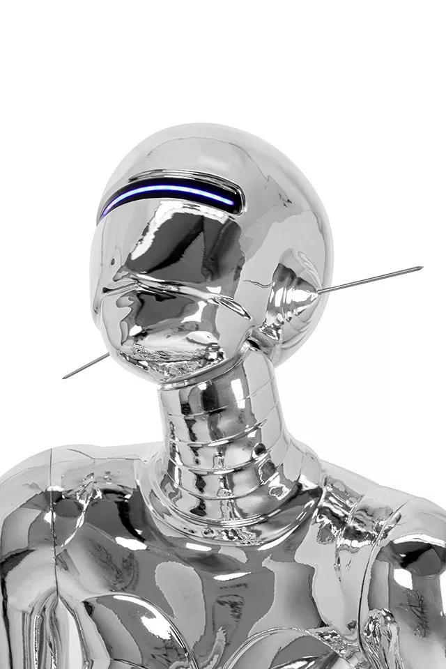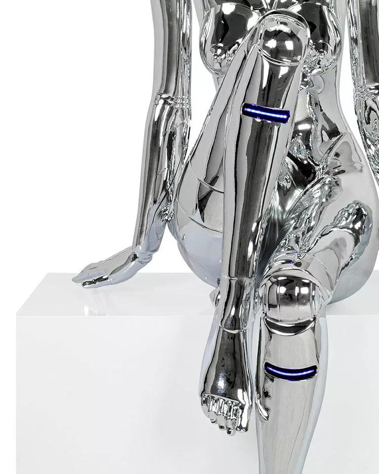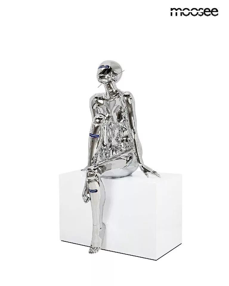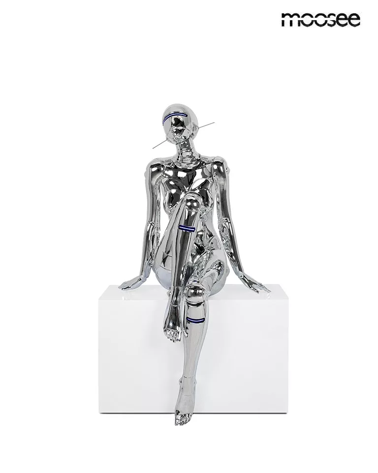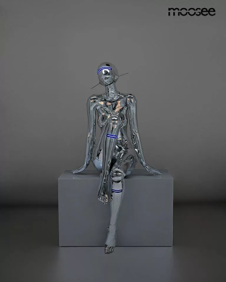 A Cyber Woman állólámpa a kortárs dizájn és a jövő technológiájának tökéletes ötvözete. A króm tükörfényű üvegszálas kivitelezés és a beépített kék LED világítás futurisztikus hangulatot teremt, miközben a szobor-szerű kialakítás művészi értéket képvisel.