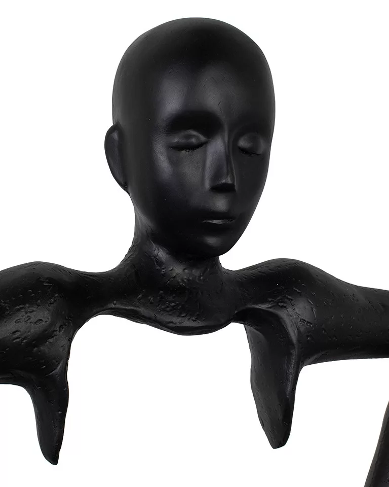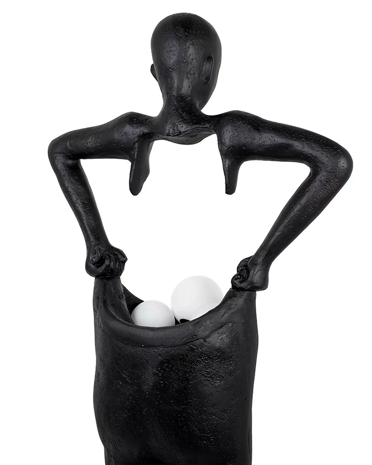 Egyedülálló művészi állólámpa üvegszálas kivitelben, amely ötvözi a modern design és funkcionalitás elemeit. A fekete sziluett „nadrágjában" rejtőző üveg lámpabúrák különleges megvilágítást biztosítanak.