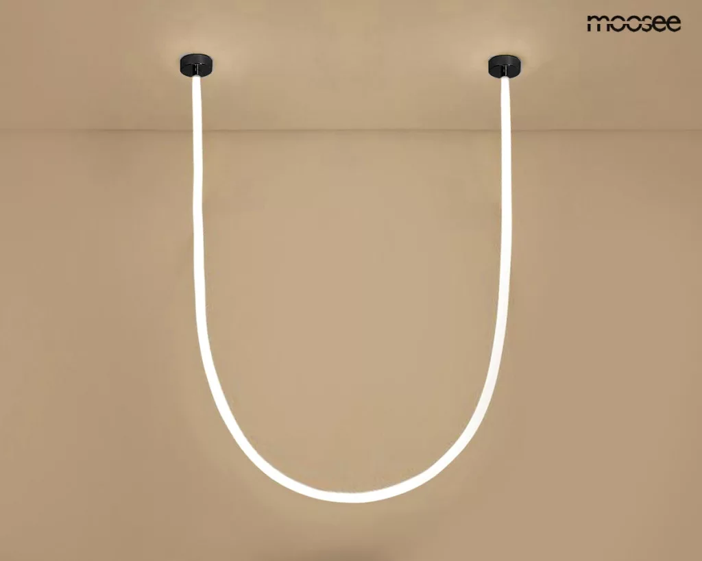 A MOOSEE LASSO 600 Smart függőlámpa egy innovatív világítási megoldás, amely ötvözi a modern technológiát és az időtlen designt. A 600 cm hosszú LED szalag rugalmasan alakítható, lehetővé téve egyedi világítási kompozíciók létrehozását. Az acél konstrukció és a minimalista fekete szín tökéletesen illeszkedik a modern enteriőrökbe.