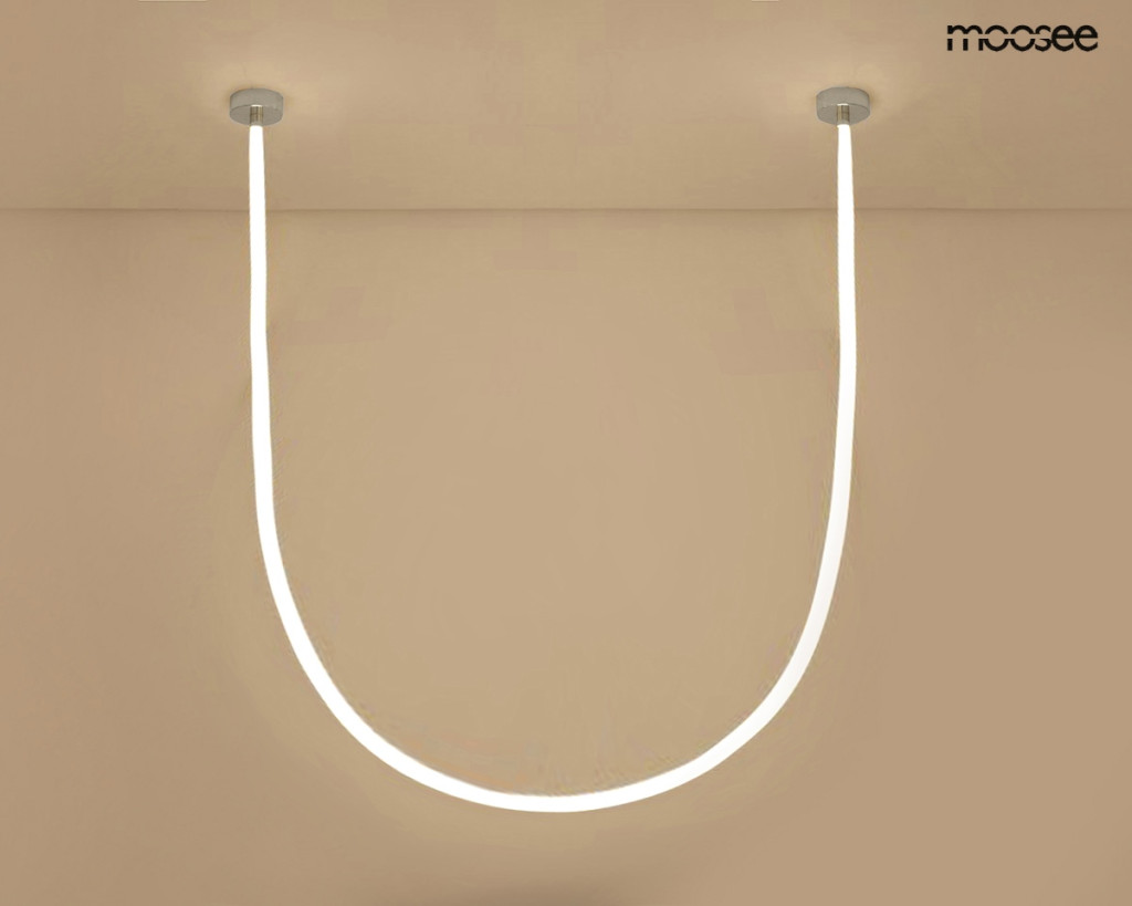 A MOOSEE LASSO 800 Smart függőlámpa egy különleges világítási megoldás, amely ötvözi a modern technológiát és a kifinomult designt. A hajlítható, 8 méteres LED szalag lehetővé teszi egyedi világítási kompozíciók létrehozását, legyen szó hullámos vagy átfont formákról.