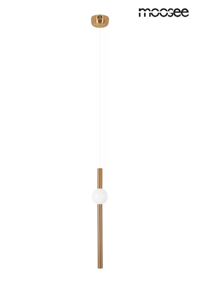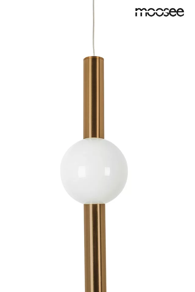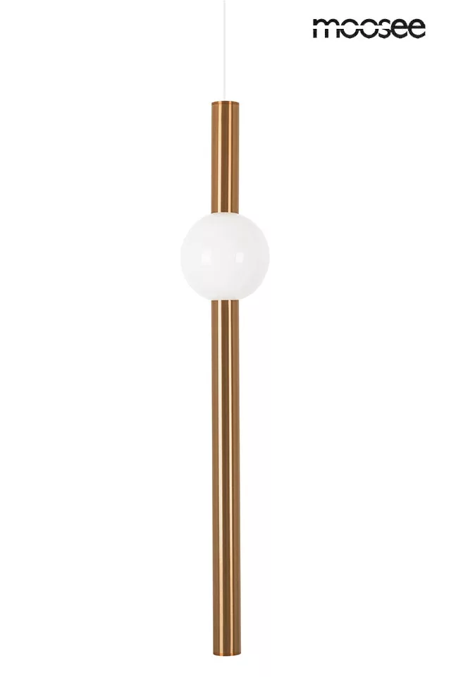 A MOOSEE Libra függőlámpa a modern világítástechnika és az időtlen design tökéletes ötvözete. A réz színű rozsdamentes acél test és a fehér üveggömb harmonikus egységet alkot, míg a karcsú, függőleges kialakítás különleges eleganciát kölcsönöz a térnek.
