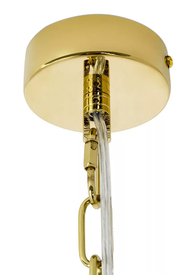 A Murano S függőlámpa az elegancia és a modern dizájn tökéletes ötvözete. Az üvegből készült, ívesen hajló szálak kecses vízesésként veszik körül a központi fényforrást, míg az arany színű fém elemek exkluzív megjelenést kölcsönöznek a lámpának. A transzparens kábel és a dekoratív lánc harmonikusan illeszkedik az összképbe.