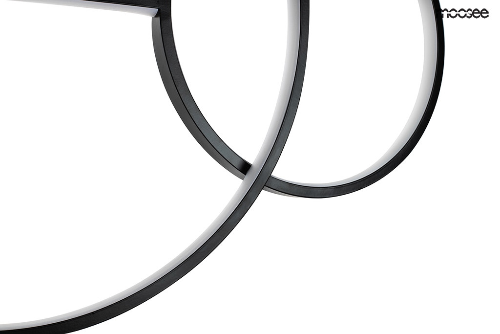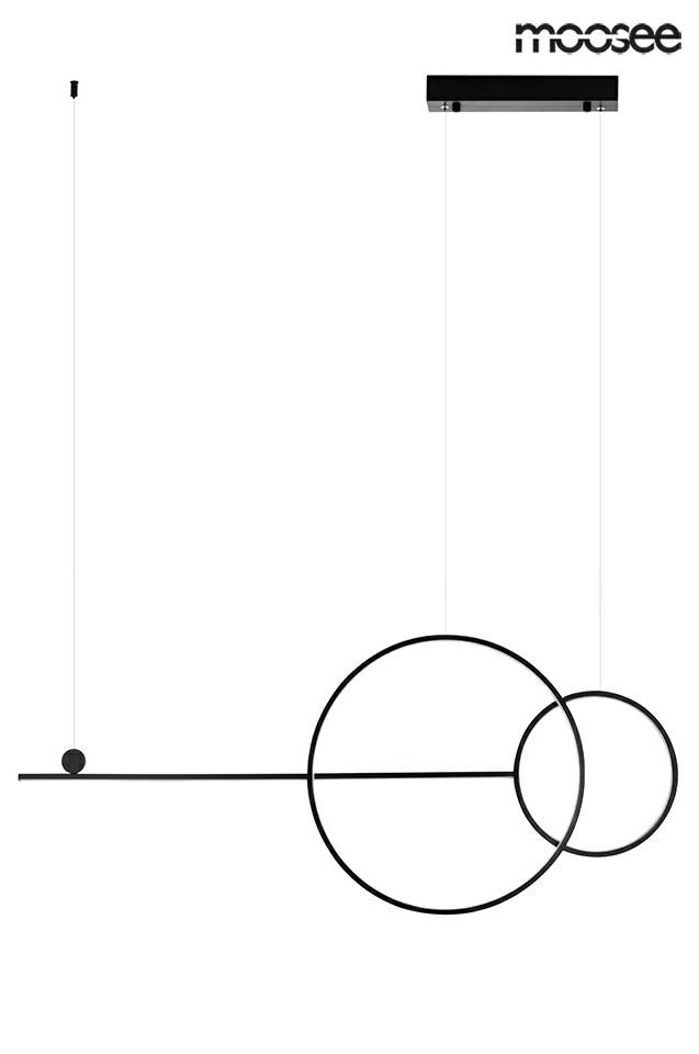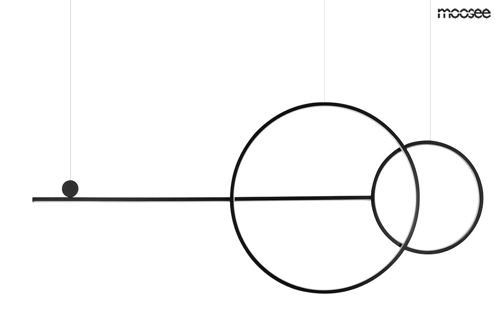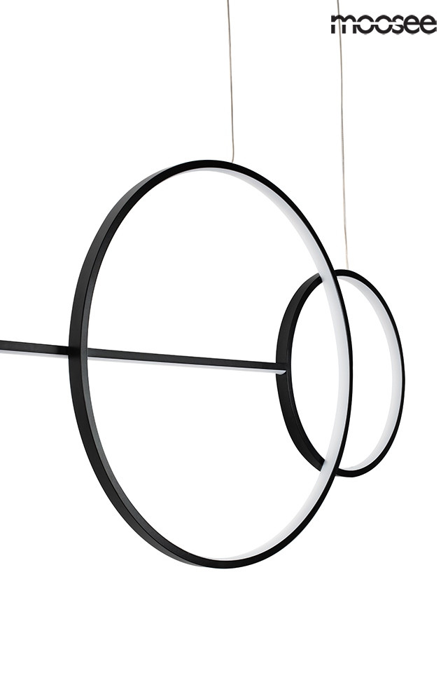 A MOOSEE RAGE függőlámpa egy művészi alkotás, amely egyesíti a modern dizájnt és a funkcionális világítást. A fekete fém és alumínium konstrukció két különböző méretű dekoratív kört tartalmaz, amelyek harmonikus egységet alkotnak a vízszintes vonalakkal.