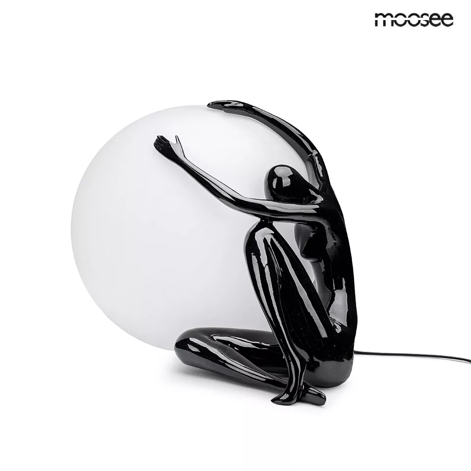 A Moosee UOMO 50 asztali lámpa egy igazi művészeti alkotás, amely egyedi módon ötvözi a világítást és a szobrászatot. A fehér polipropilén gömblámpa és a fekete műgyanta figura kontrasztja különleges vizuális élményt nyújt. A lámpa nem csupán világítótest, hanem egy művészi installáció, amely azonnal a figyelem középpontjába kerül.