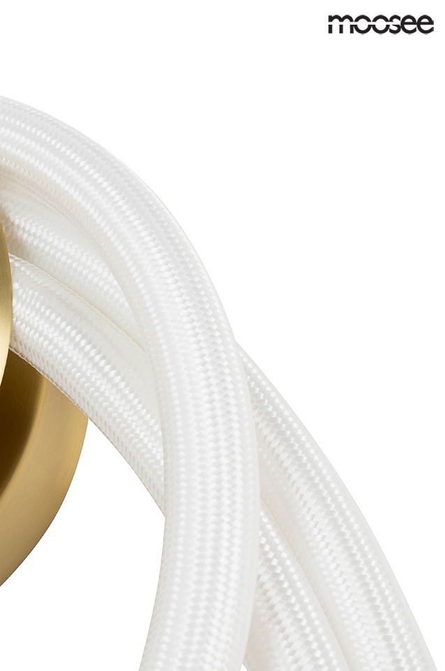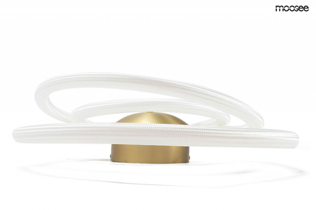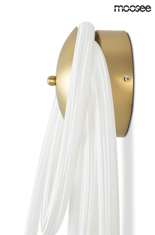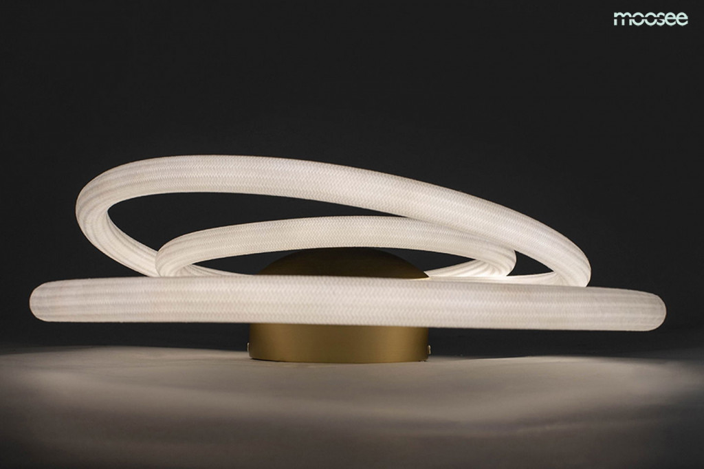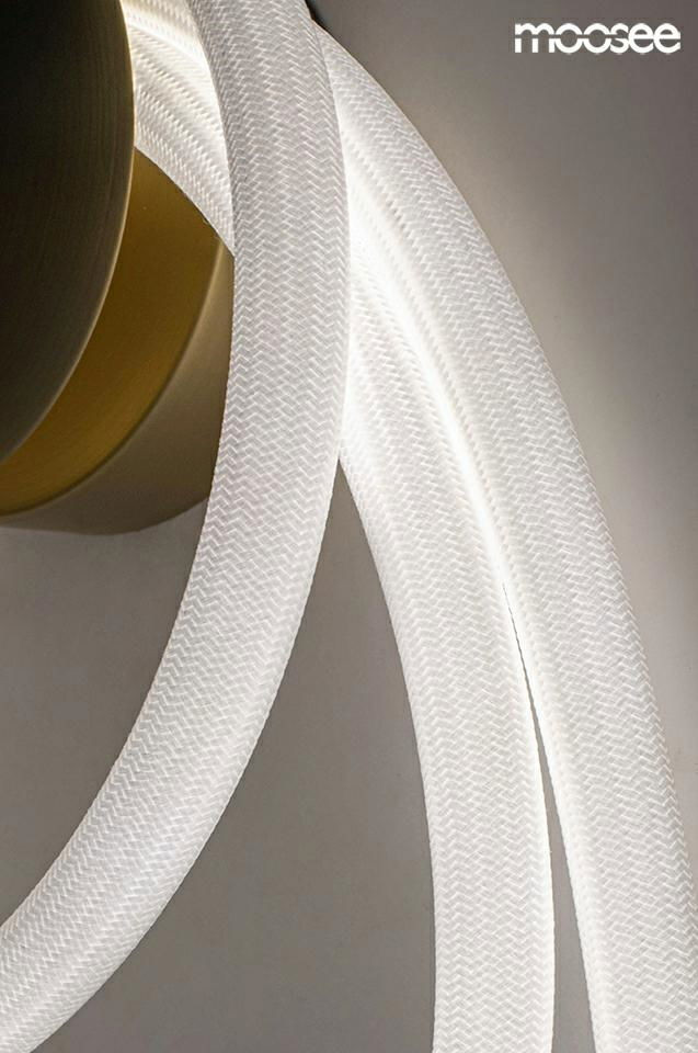 Aranyszínű fém montázs, rugalmas szövetből fonott tömlővel átszőve, amely egy ledes fényforrást rejt.