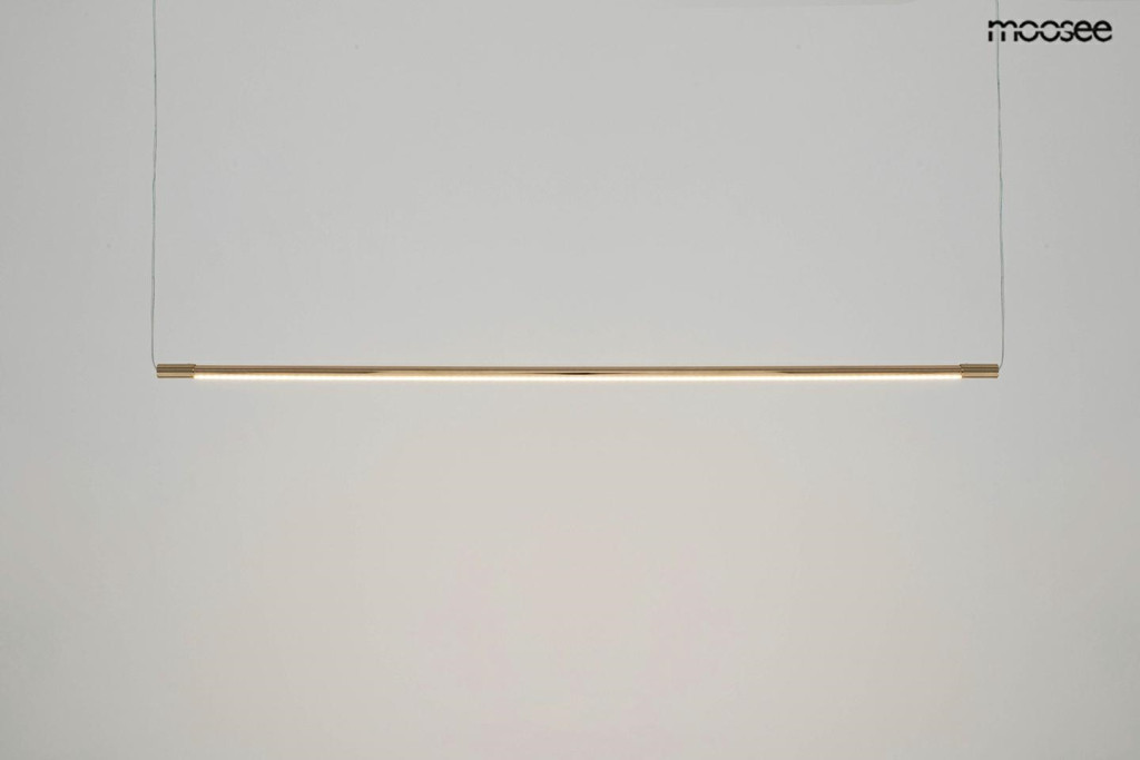 A MOOSEE Ombre Level 100 függőlámpa a modern világítástechnika és az időtlen design tökéletes ötvözete. Az arany színű acél kivitelezés és a hosszúkás, akril diffúzor harmonikus egységet alkot, miközben a beépített LED fényforrás egyenletes, kellemes fényt biztosít.
