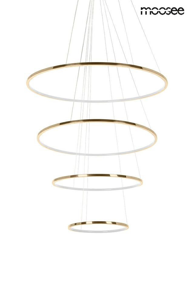 Elegáns, minimál stílusú LED függőlámpa 4 arany gyűrűvel, amely tökéletes megoldást nyújt a modern terek megvilágításához.