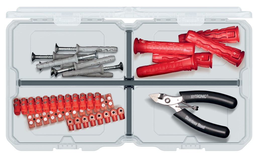 A rendező három kivehető elválasztóval rendelkezik, amelyek lehetővé teszik a belső tér egyéni igények szerinti felosztását. Az IP55 védettségnek köszönhetően megbízhatóan védi a szerszámokat a portól és a nedvességtől.