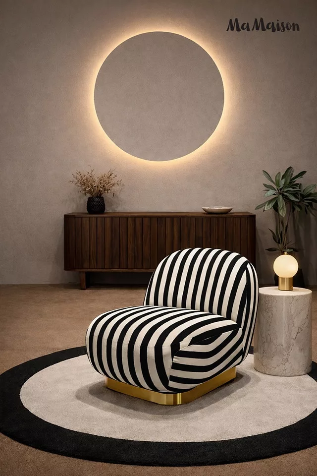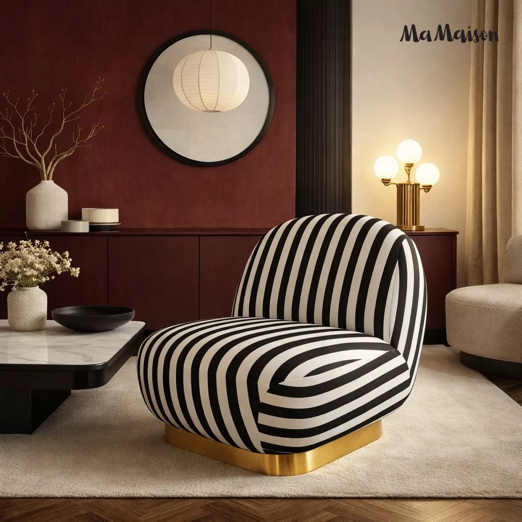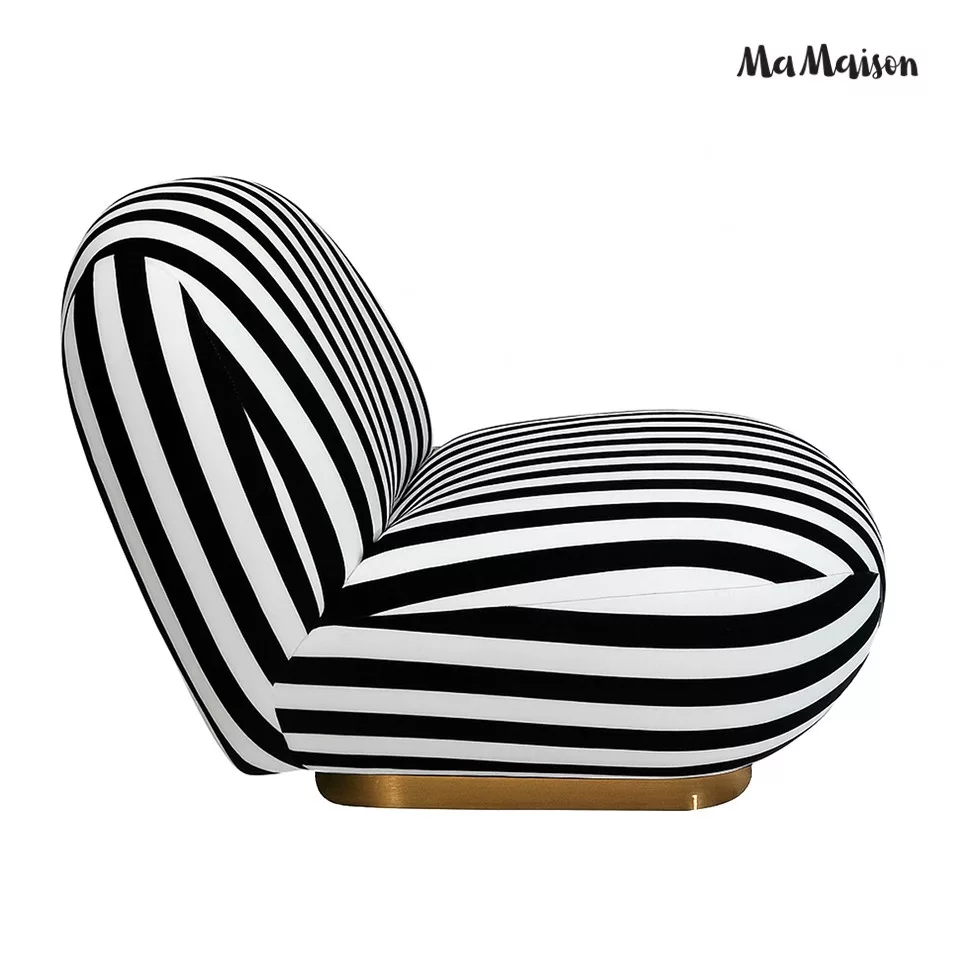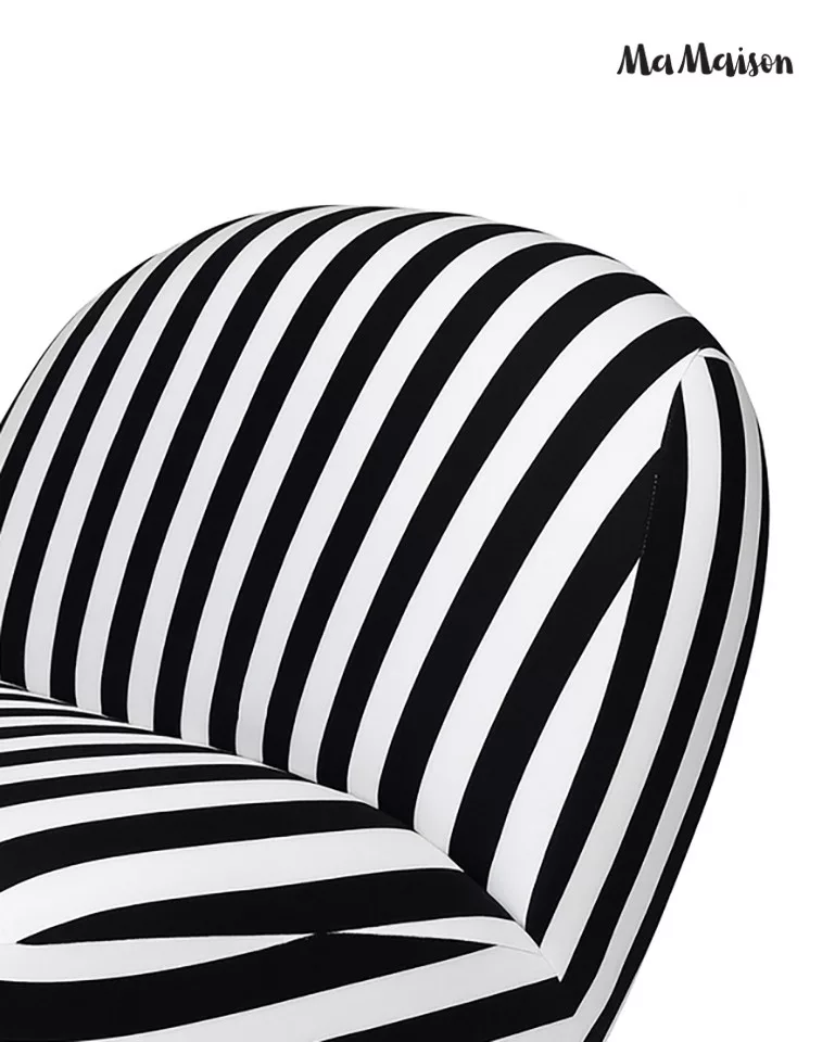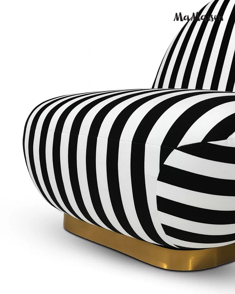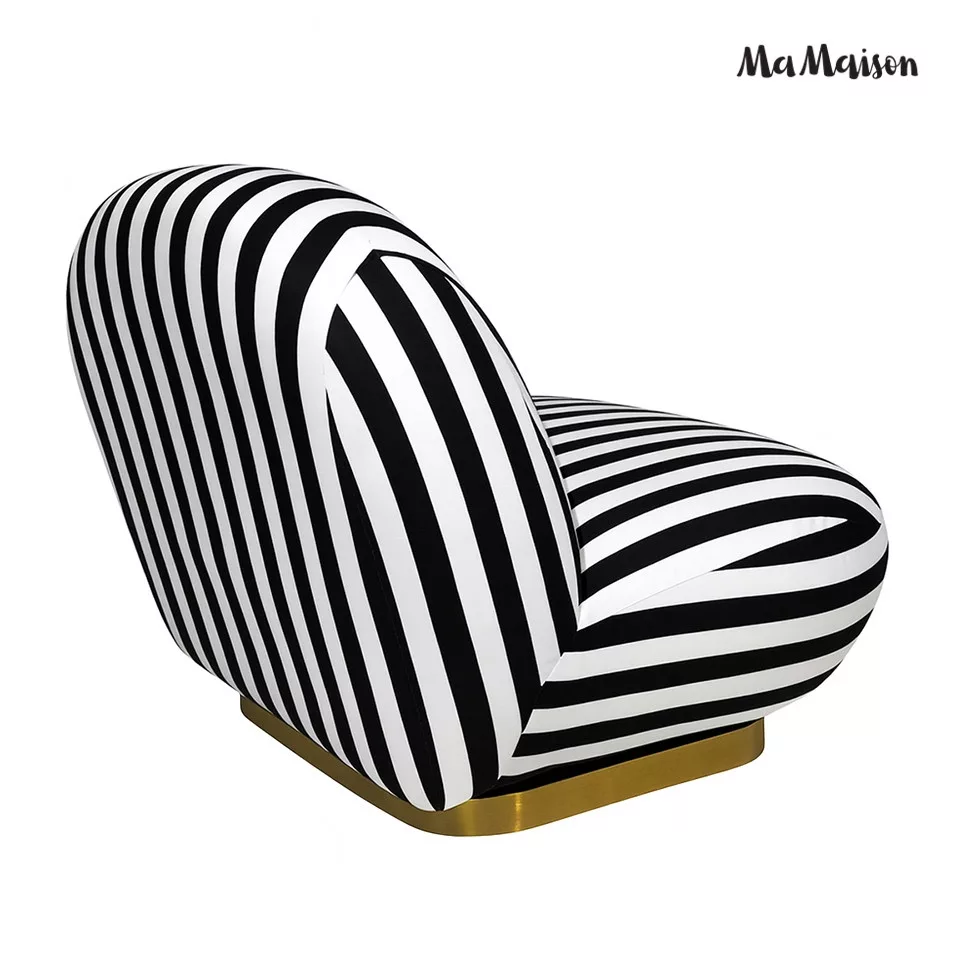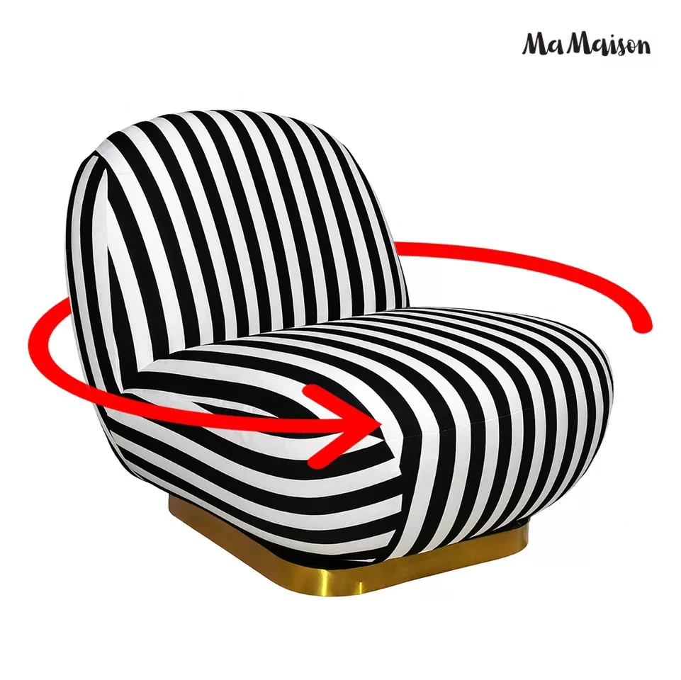 MaMaison Azure Forgó Fotel Csíkos Poliészter Fekete-Fehér Arany Talppal