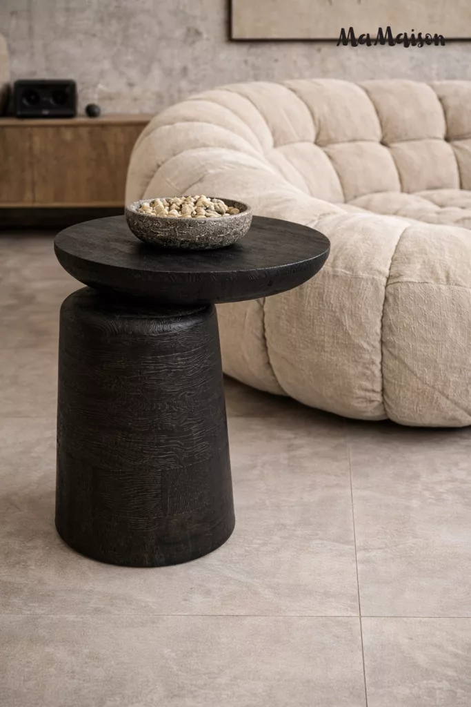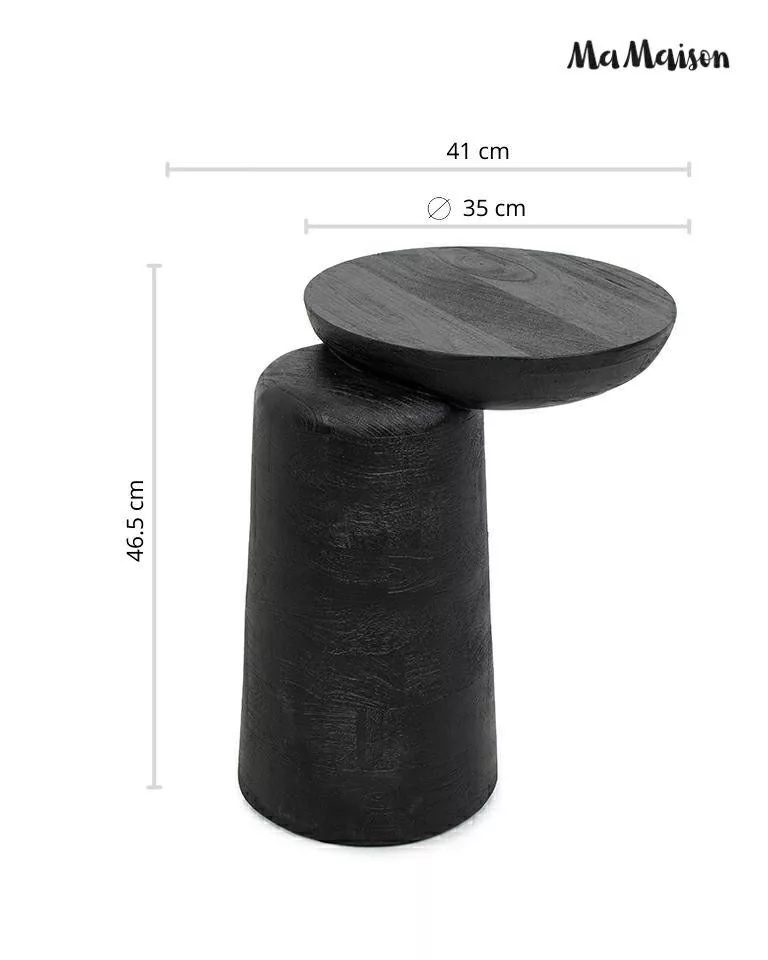 Az Elias kisasztal a modern dizájn és a természetes anyagok tökéletes ötvözete. Az aszimmetrikus forma és a matt fekete felület különleges karaktert kölcsönöz a darabnak, míg a mangófa szerkezet tartósságot és időtlen eleganciát biztosít.