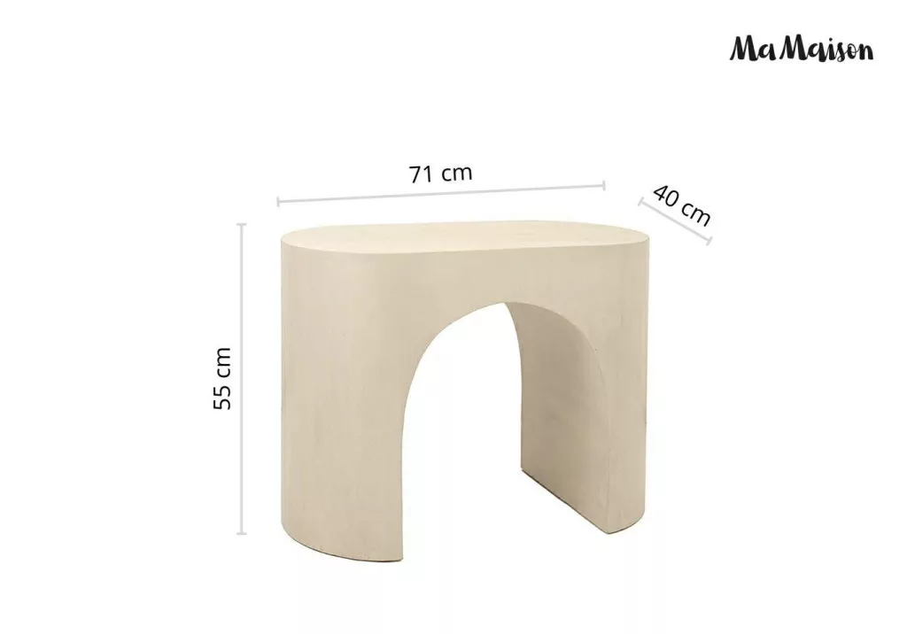 Az Icaro kisasztal a modern dizájn és a természetes anyagok tökéletes ötvözete. A mangófából készült bútordarab egyedi, ívelt kialakítása művészi eleganciát kölcsönöz minden térnek. Az asztal letisztult formavilága és bézs színe könnyedén illeszkedik bármilyen lakberendezési stílushoz.