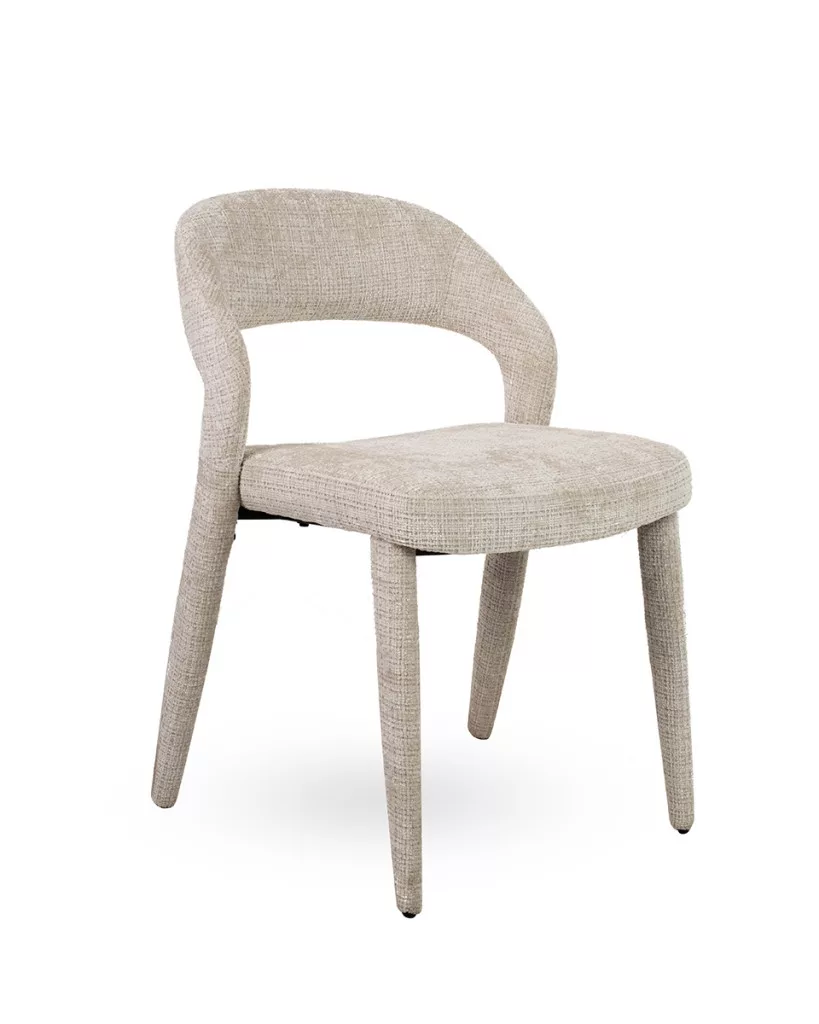 Elegáns, modern vonalvezetésű kárpitozott szék bézs színű Davis Cremona szövettel, amely tökéletes választás étkezőbe vagy irodába egyaránt.