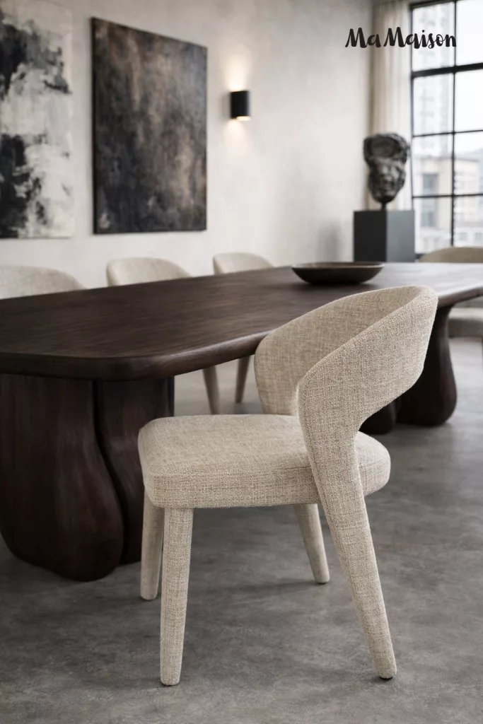 A MaMaison KOS szék a modern design és a praktikus kényelem tökéletes ötvözete. Az áramvonalas, ívelt vonalvezetésű háttámla és az ergonomikus ülőfelület maximális komfortot biztosít, míg a prémium minőségű Davis Cremona szövet kellemes tapintást és tartósságot garantál.