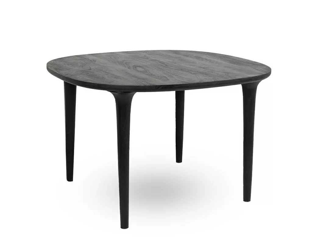 A Laminar étkezőasztal a kifinomult minimalizmus és a modern forma tökéletes megtestesítője. A tömör mangófából készült, feketére festett asztal finom aszimmetriájával és lágy vonalaival azonnal magára vonja a figyelmet. A kerek asztallap természetes kisugárzása tökéletesen harmonizál a karcsú lábakkal.