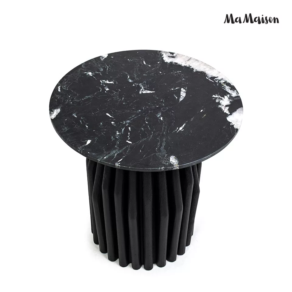 MaMaison Levante Fekete Márvány Dohányzóasztal Mangófa Alappal
