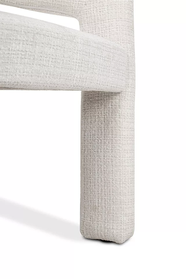 A szék ergonomikus kialakítása és a kényelmes kartámaszok biztosítják a maximális komfortérzetet. A robusztus lábak stabilitást nyújtanak, miközben a szék teljes kárpitozása lágy, hívogató megjelenést kölcsönöz a bútordarabnak.
