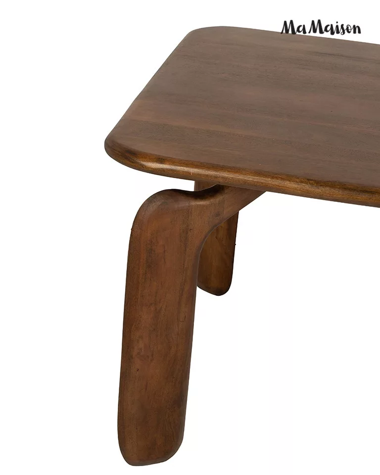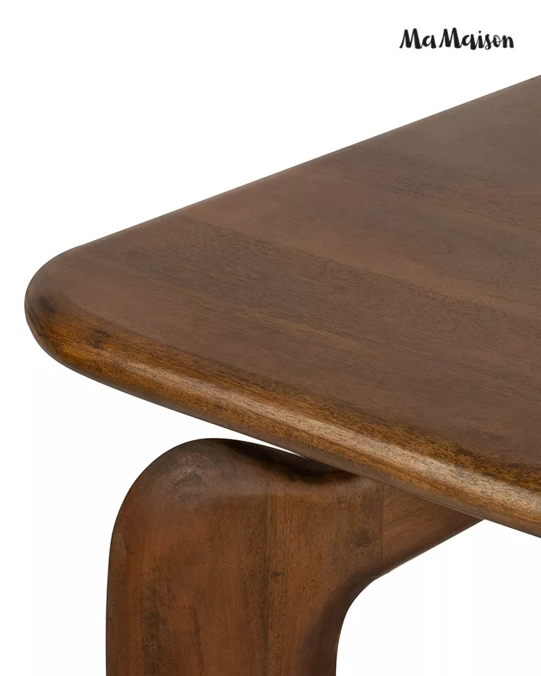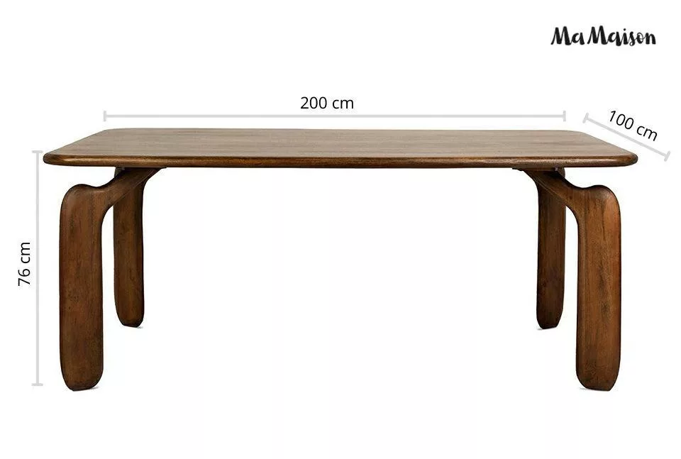 Az Orizon étkezőasztal a modern design és a természetes anyagok harmonikus találkozása. A mangófából készült asztallap és az egyedi, ívelt lábak különleges megjelenést kölcsönöznek a bútornak. A meleg barna árnyalat és a gondosan megmunkált felületek kiemelik a fa természetes szépségét.