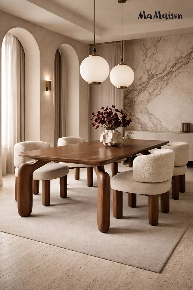 A lekerekített sarkok és az organikus formák nem csak esztétikai szempontból előnyösek, de biztonságosabbá is teszik a mindennapi használatot. Az asztal robusztus szerkezete és időtálló kialakítása hosszú évekig szolgálja a családi összejöveteleket.
