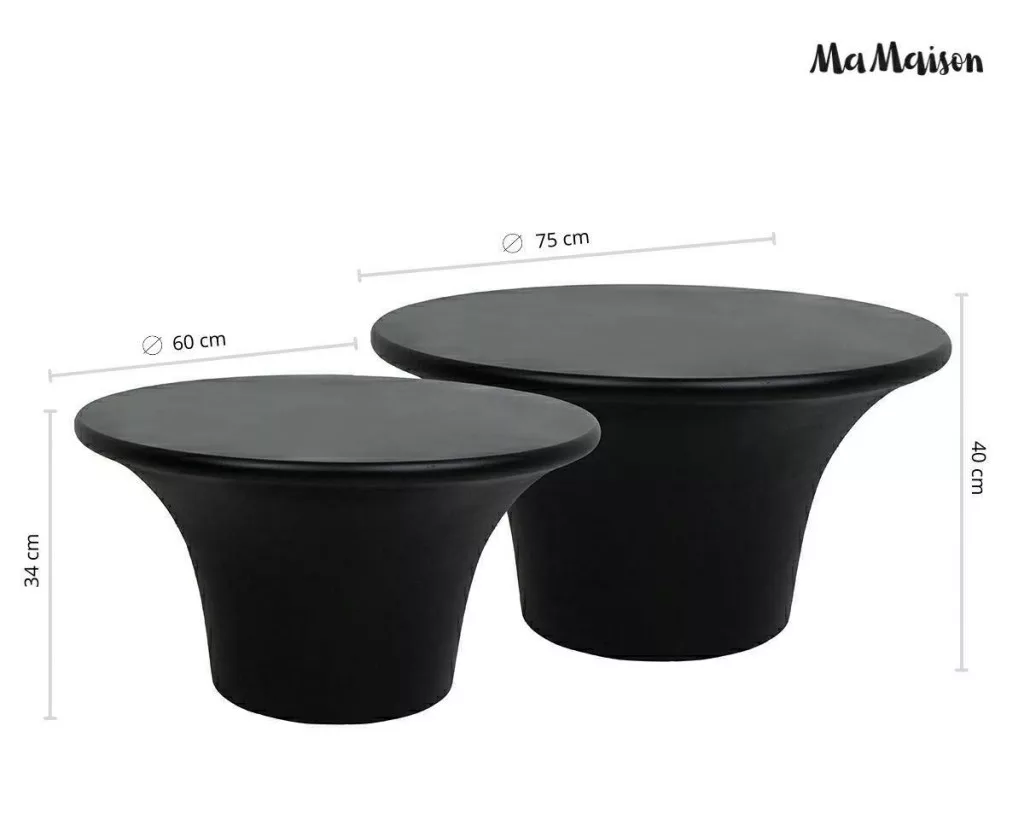 A MaMaison Podium dohányzóasztal szett a modern otthonok ékköve. A két különböző méretű asztal organikus vonalvezetése és hengeres talapzata egyedi karaktert kölcsönöz a térnek. A matt fekete MDF felület nem csak stílusos megjelenést biztosít, de tartósságot is garantál.