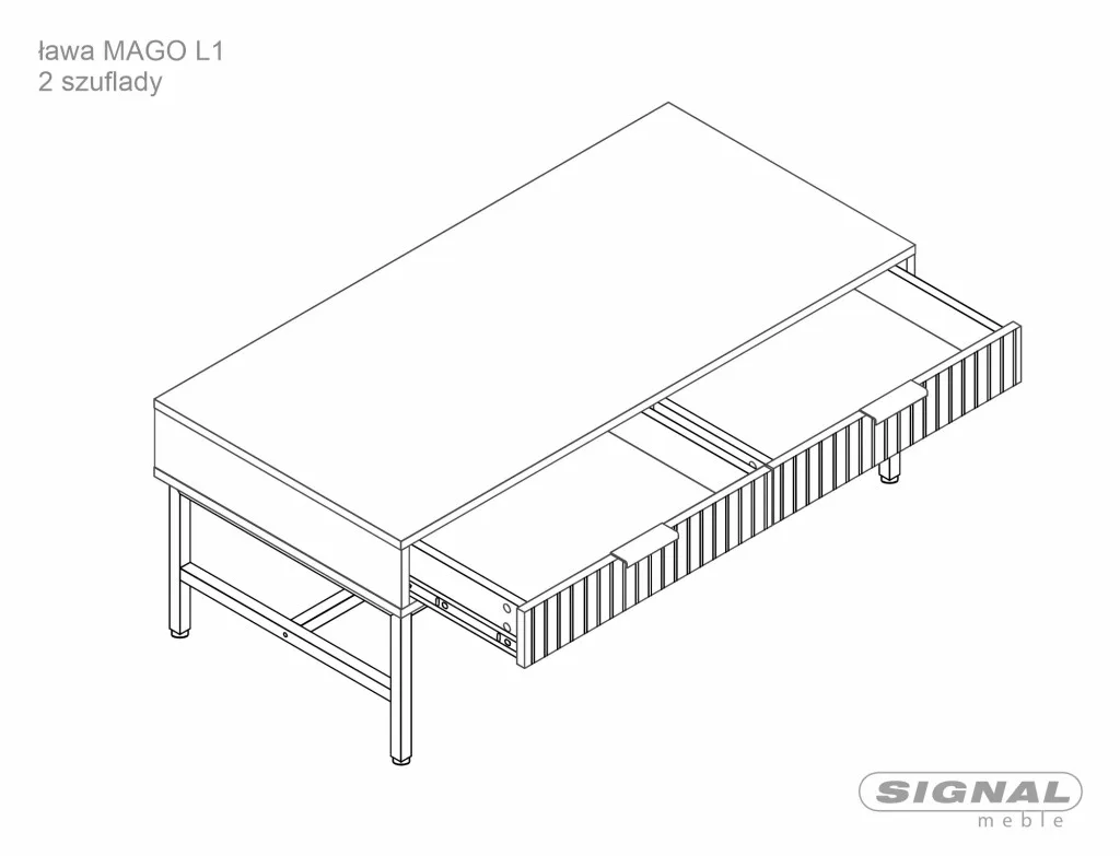 A Mago L1 dohányzóasztal tökéletes választás azoknak, akik az elegáns megjelenést és praktikus funkcionalitást egyaránt fontosnak tartják. A tölgy és fekete matt színkombináció időtlen eleganciát sugároz, míg a bordázott frontú fiók extra tárolóhelyet biztosít.