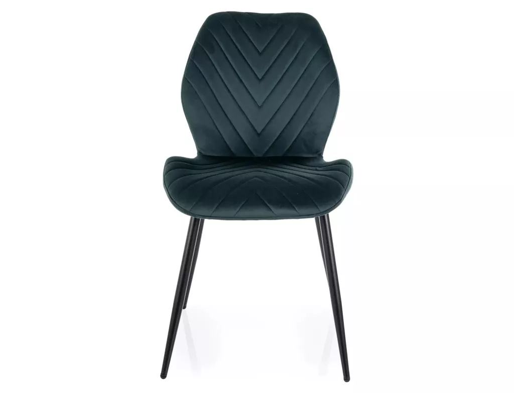 A Mike Velvet étkezőszék tökéletesen ötvözi a modern design elemeit a maximális kényelemmel. A szék háttámláján és ülőfelületén található V-alakú varrások nem csupán esztétikai elemként szolgálnak, hanem növelik az ülés komfortját is. A mély zöld bársony kárpitozás különleges eleganciát kölcsönöz a darabnak.