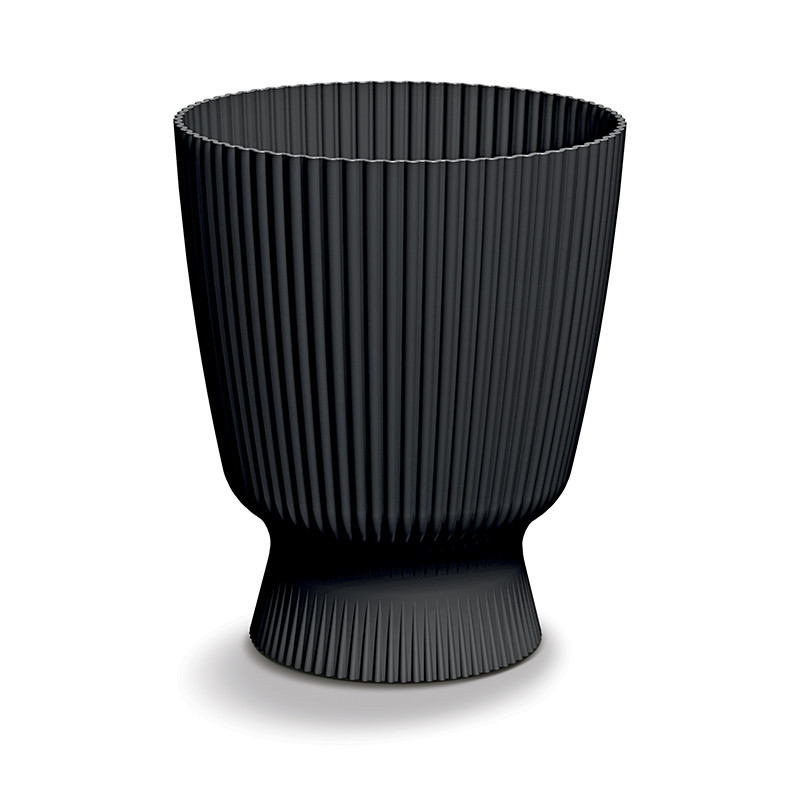 A Milly Round kaspó egyedi, függőleges bordázatával és kifinomult antracit színével a modern otthonok elegáns kiegészítője. A felfelé enyhén szélesedő forma és a stabil talprész tökéletes egyensúlyt biztosít, miközben a bordázott felület érdekes fény-árnyék játékot hoz létre.