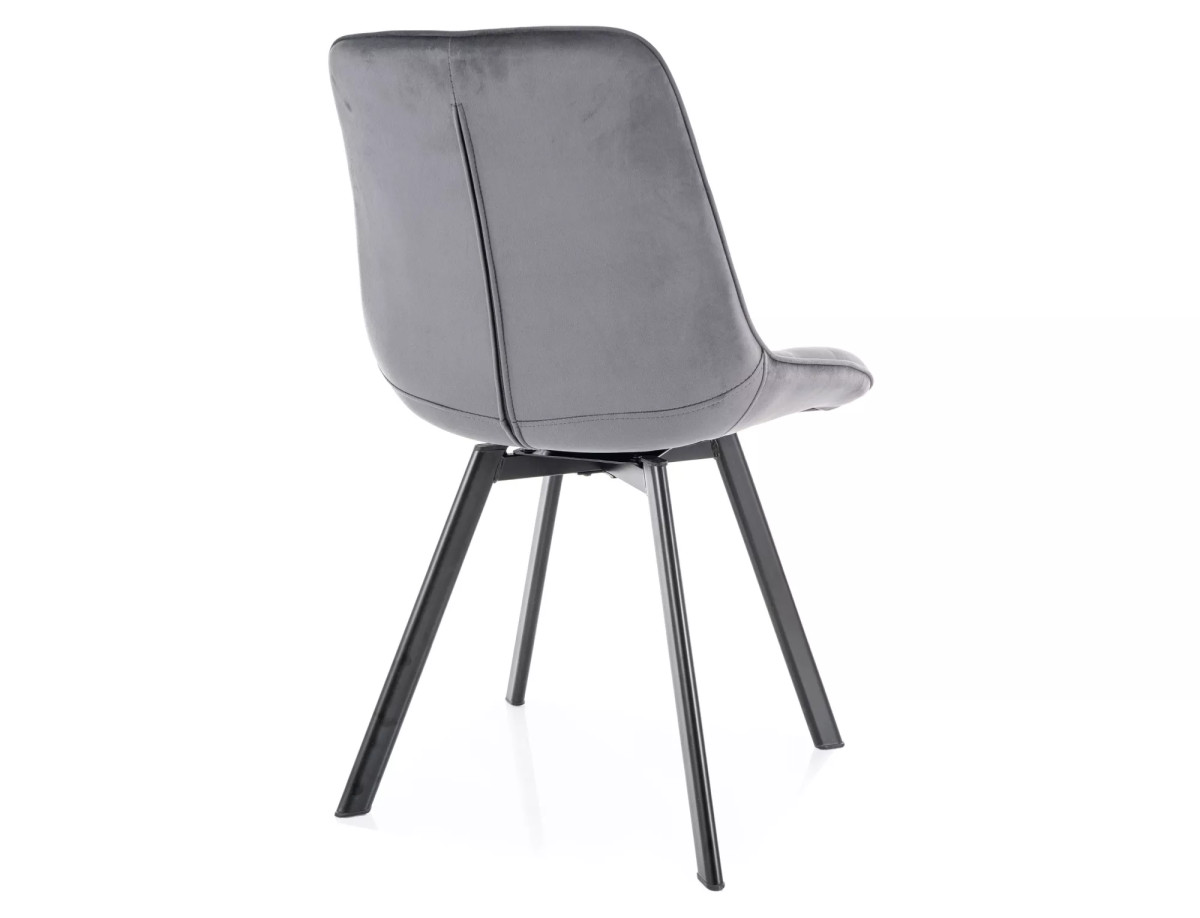 Elegáns, modern étkezőszék szürke bársony kárpitozással és matt fekete fém lábakkal, steppelt ülőfelülettel a maximális kényelemért.