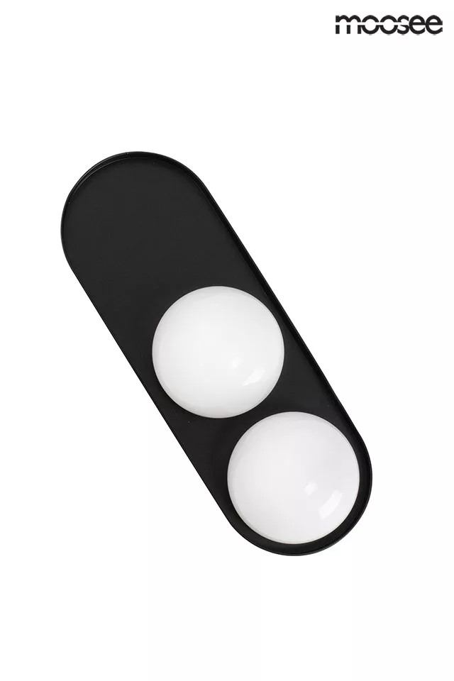A Moosee Drops 2 fali lámpa a modern világítástechnika és az időtlen design tökéletes ötvözete. A fekete szénacél keret és a két fehér üveggömb harmonikus kontrasztot alkot, amely bármely helyiség dekoratív elemévé válik. A kézzel fújt üveggömbök természetes buborékai egyedi karaktert kölcsönöznek minden egyes lámpának.