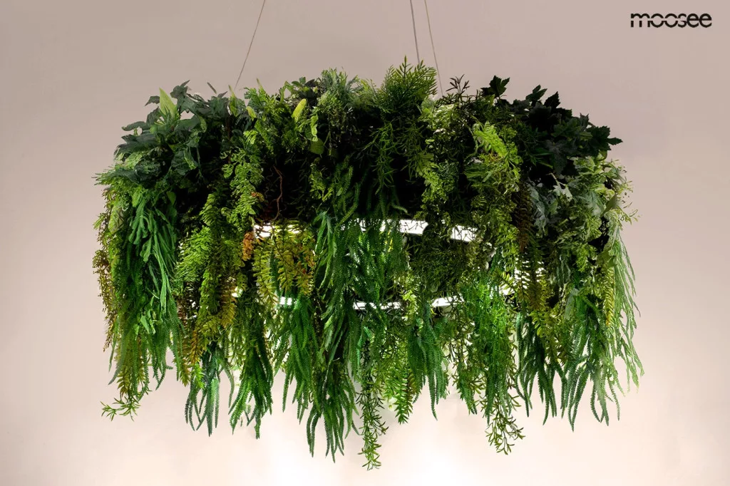 A Moosee Gardens 160 függőlámpa egyedülálló módon ötvözi a modern világítástechnikát a természet szépségével. Bujánzó zöld növényzettel díszített LED lámpa távirányítóval és színhőmérséklet-szabályozással.