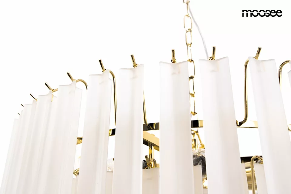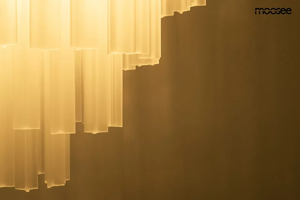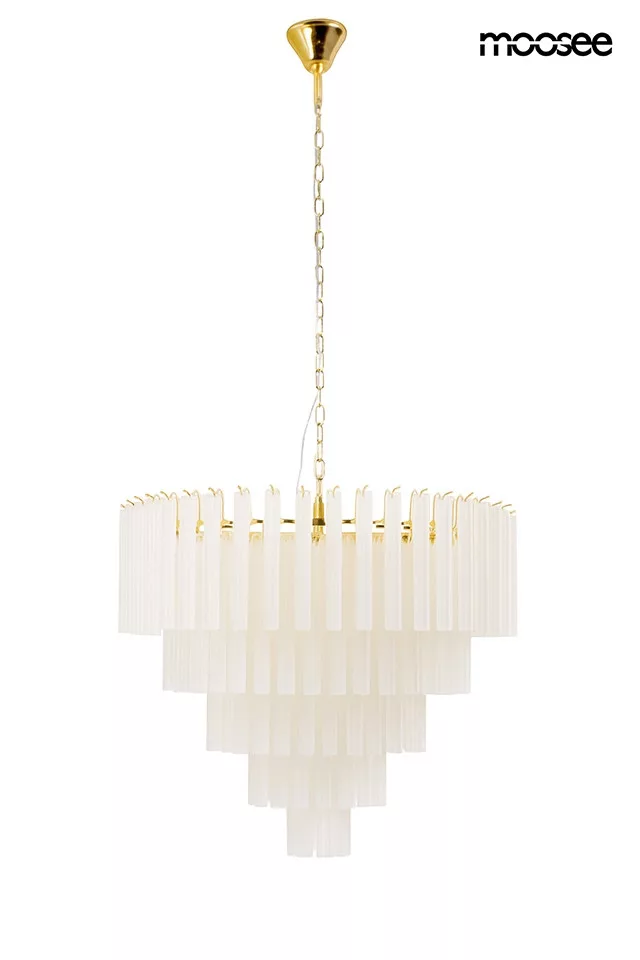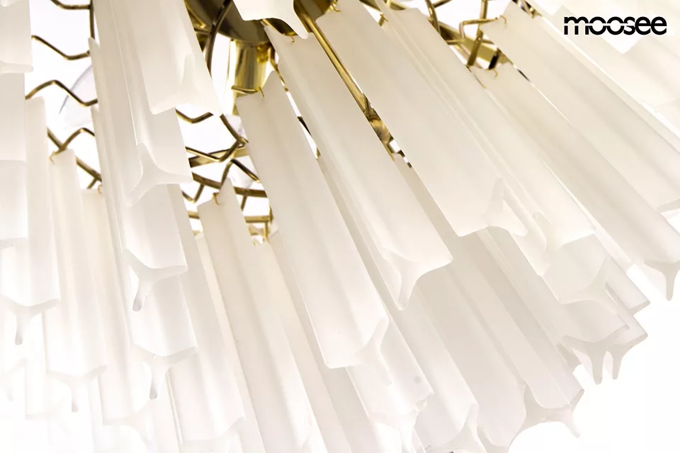 A Moosee Gordon 80 függőlámpa lenyűgöző, többszintes kialakítással rendelkezik, amely 21 tejfehér, matt üvegklónból áll, és arany színű acél szerkezettel párosul. Ez a látványos lámpa harmonikusan ötvözi a funkcionalitást az elegáns formával, így tökéletesen illeszkedik mind tágas, mind intimebb terekbe. A klónok finoman szórják a fényt, meleg és barátságos hangulatot teremtve otthonában.