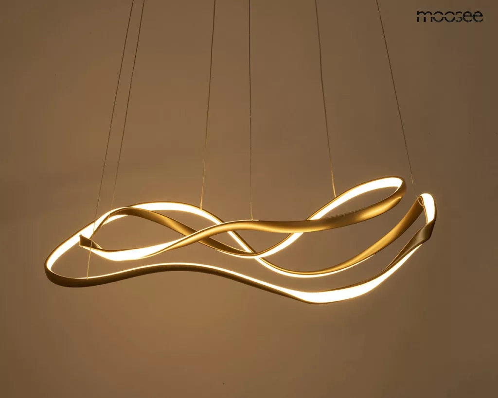 A Moosee Waves 2 függőlámpa egy lenyűgöző világítótest, amely egyesíti a modern dizájnt és a funkcionalitást. A víz hullámzását idéző, folyékony vonalvezetésű forma prémium minőségű fémből készült, arany színben pompázik, és egyedi karaktert kölcsönöz minden térnek.