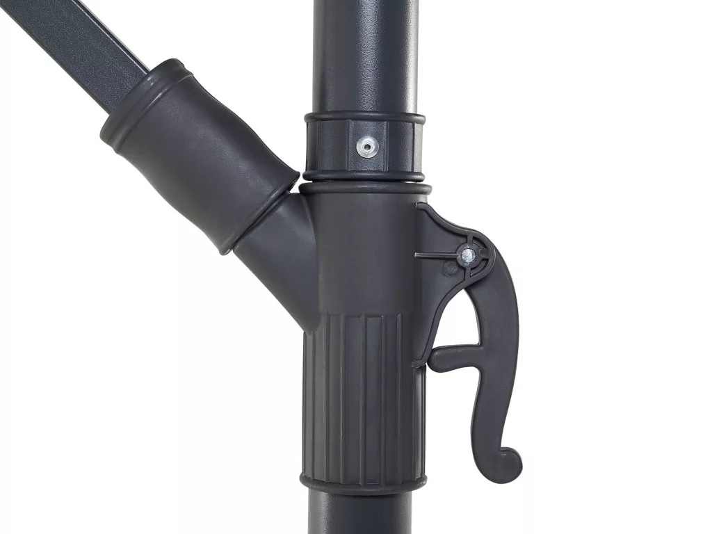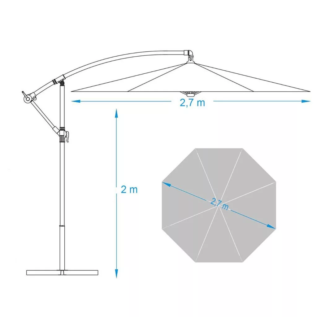 A Moxu kerti függő napernyő a vendéglátóhelyek eleganciáját hozza el az Ön otthonába. A 2,7 méter átmérőjű ernyő bőséges árnyékot ad, míg az oldalsó tartóoszlop lehetővé teszi, hogy kerti bútorait közvetlenül az ernyő alá helyezze. A praktikus hajtókarral az ernyő pillanatok alatt nyitható és csukható.