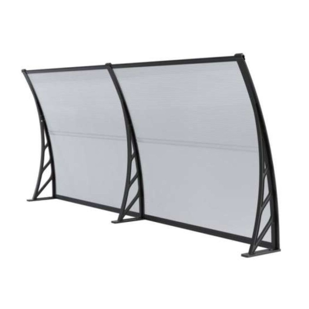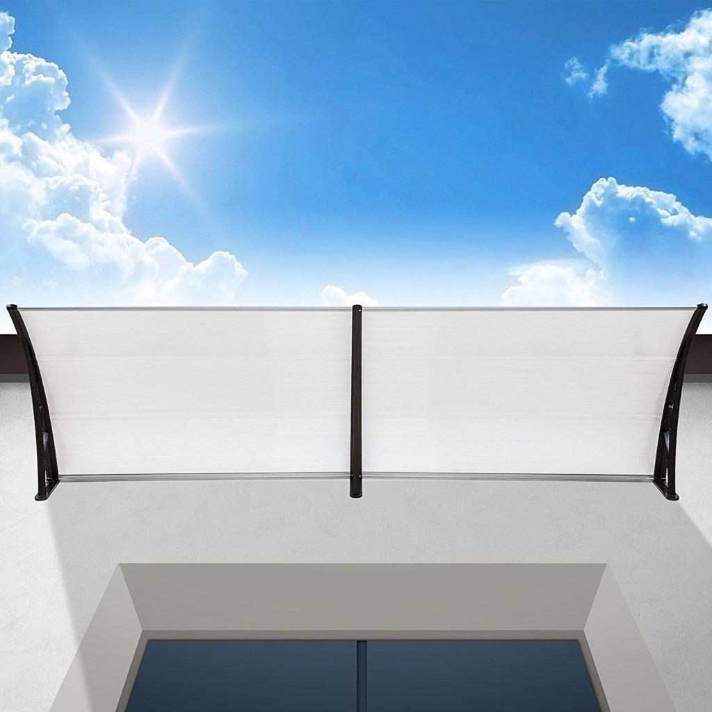 Moxu Műanyag Előtető, 200x90 cm, Fekete Színű Fali Tartóelemekkel,Áttetsző Polikarbonát Lapokkal