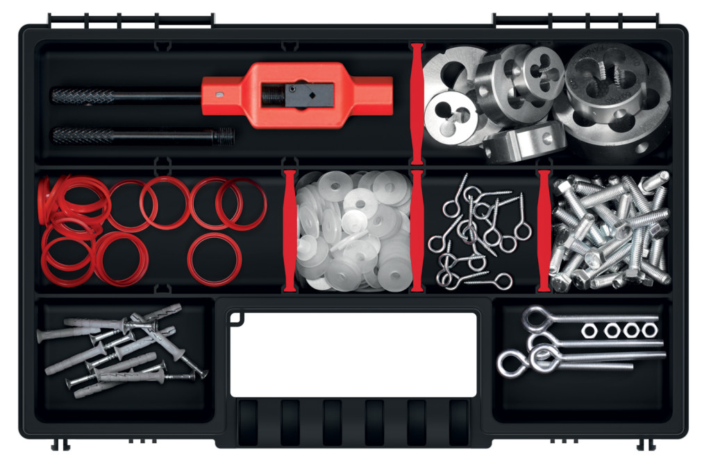A NORS 30 szerszámrendező ideális megoldást kínál a szerszámok és kisebb alkatrészek rendszerezett tárolására. Az átlátszó PP fedél azonnali rálátást biztosít a tárolt eszközökre, míg a 8 kivehető rekesz maximális rugalmasságot nyújt a belső tér felosztásában.