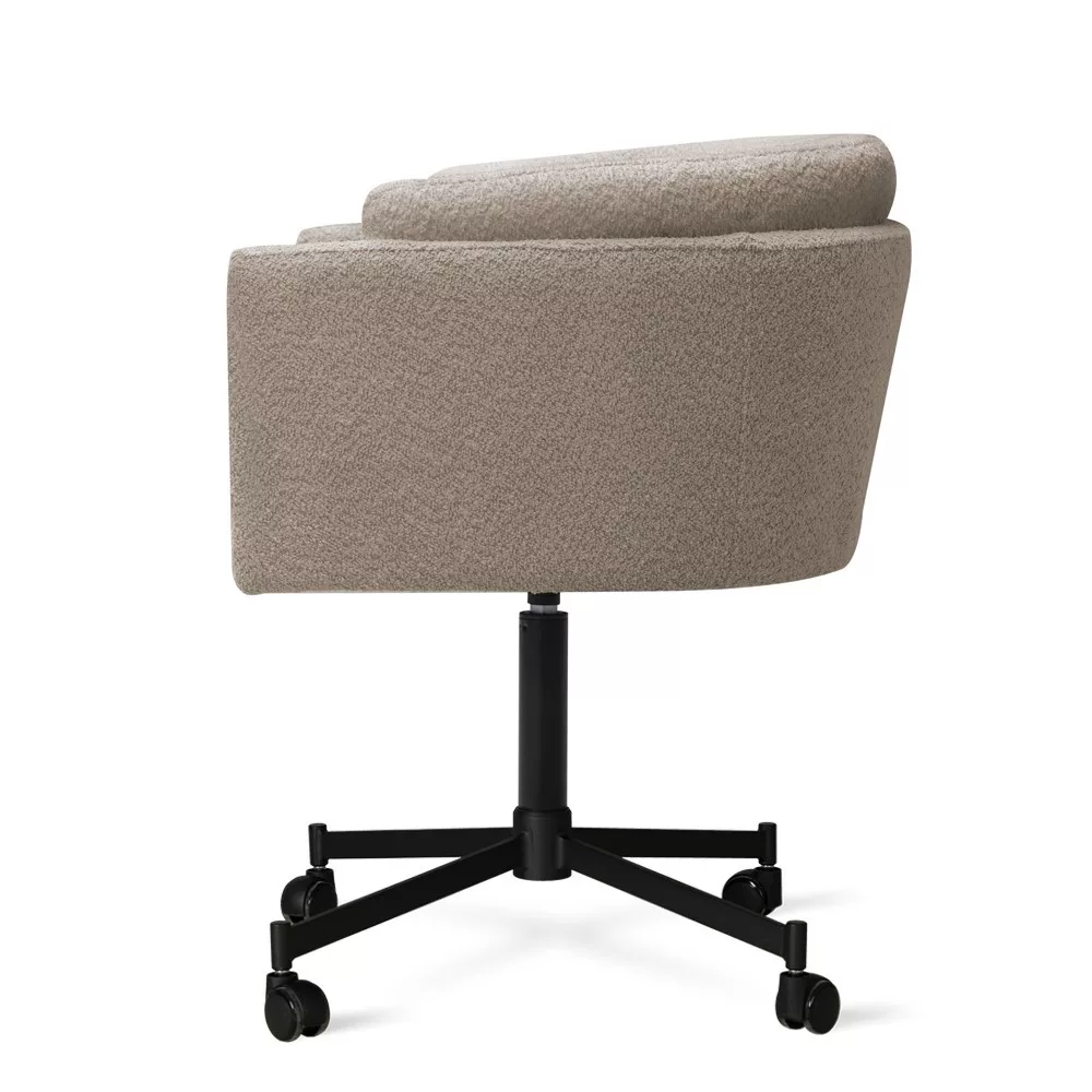 Modern, kényelmes forgószék puha szövet kárpitozással és praktikus görgős lábakkal, tökéletes választás otthoni irodába vagy dolgozószobába.