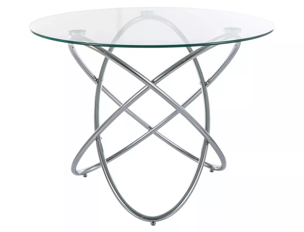 Az Orbit étkezőasztal egy művészi alkotás, amely egyesíti a funkcionalitást és az esztétikumot. A 100 cm átmérőjű edzett üveglap tökéletes átláthatóságot biztosít, míg a keresztezett króm váz egy izgalmas, orbital mintázatot hoz létre, amely minden szögből más-más látványt nyújt.