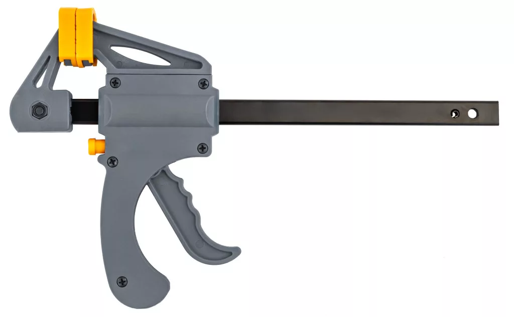 Professzionális egykezes gyorsszorító 150 mm-es befogási tartománnyal és praktikus feszítő funkcióval.
