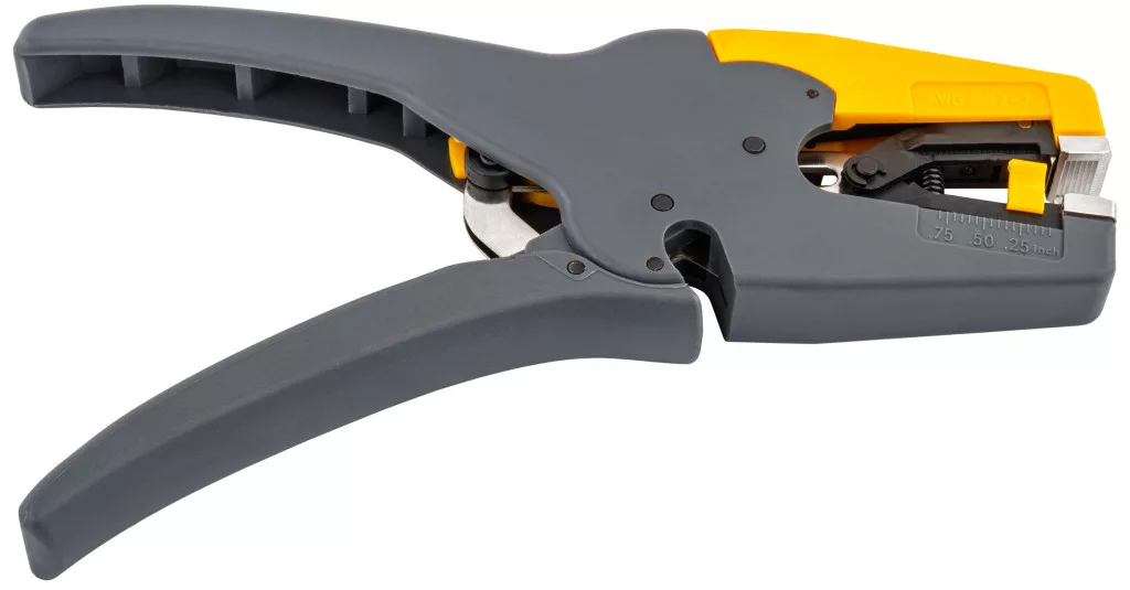 Professzionális automata kábelcsupaszító 0,03 és 10 mm² közötti vezetékekhez, beépített vágóéllel és precíziós hosszütközővel.