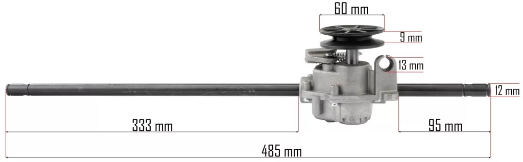 A termék robusztus felépítése garantálja, hogy a fűnyírás során fellépő rezgések és mechanikai hatások ne tegyenek kárt a belső szerkezetben. A 485 mm-es teljes tengelyhossz és a 60 mm-es ékszíjtárcsa optimális áttételt biztosít, így a gép haladási sebessége ismét a gyári értékeknek megfelelő lesz. A minőségi anyaghasználat megelőzi a korai kopást, meghosszabbítva ezzel a kerti gép élettartamát.
