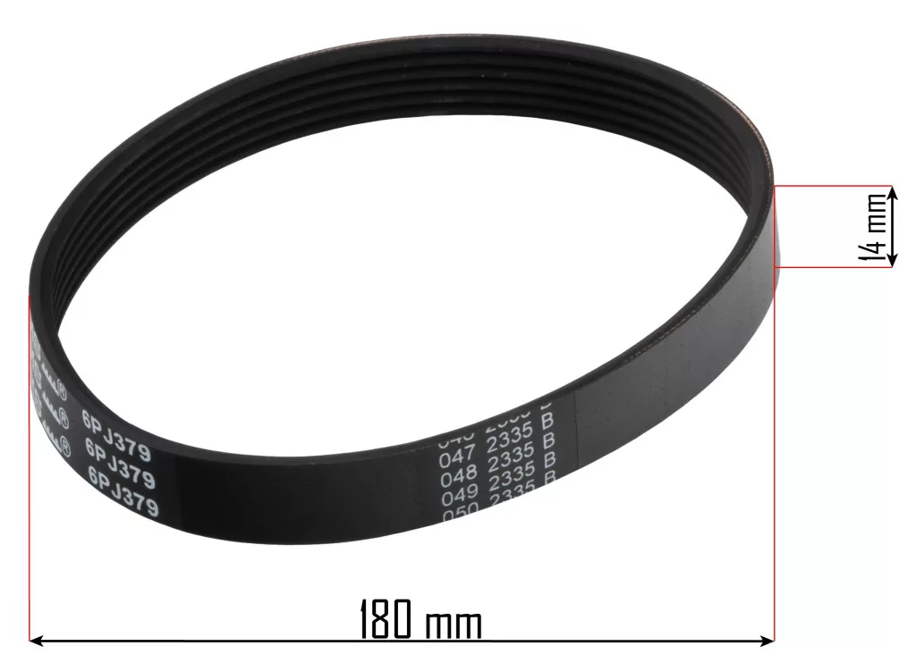 Ez a speciális 6PJ379 profilú szíj kifejezetten a nagy igénybevételnek kitett kerti gépekhez készült. A hatbordás kialakítás biztosítja a maximális tapadást a tárcsákon, megakadályozva a csúszást még sűrűbb fű vagy nehezebb talajviszonyok esetén is. A 14 mm-es szélesség és a precíz gyártási technológia garantálja a hosszú élettartamot és a csendes futást.