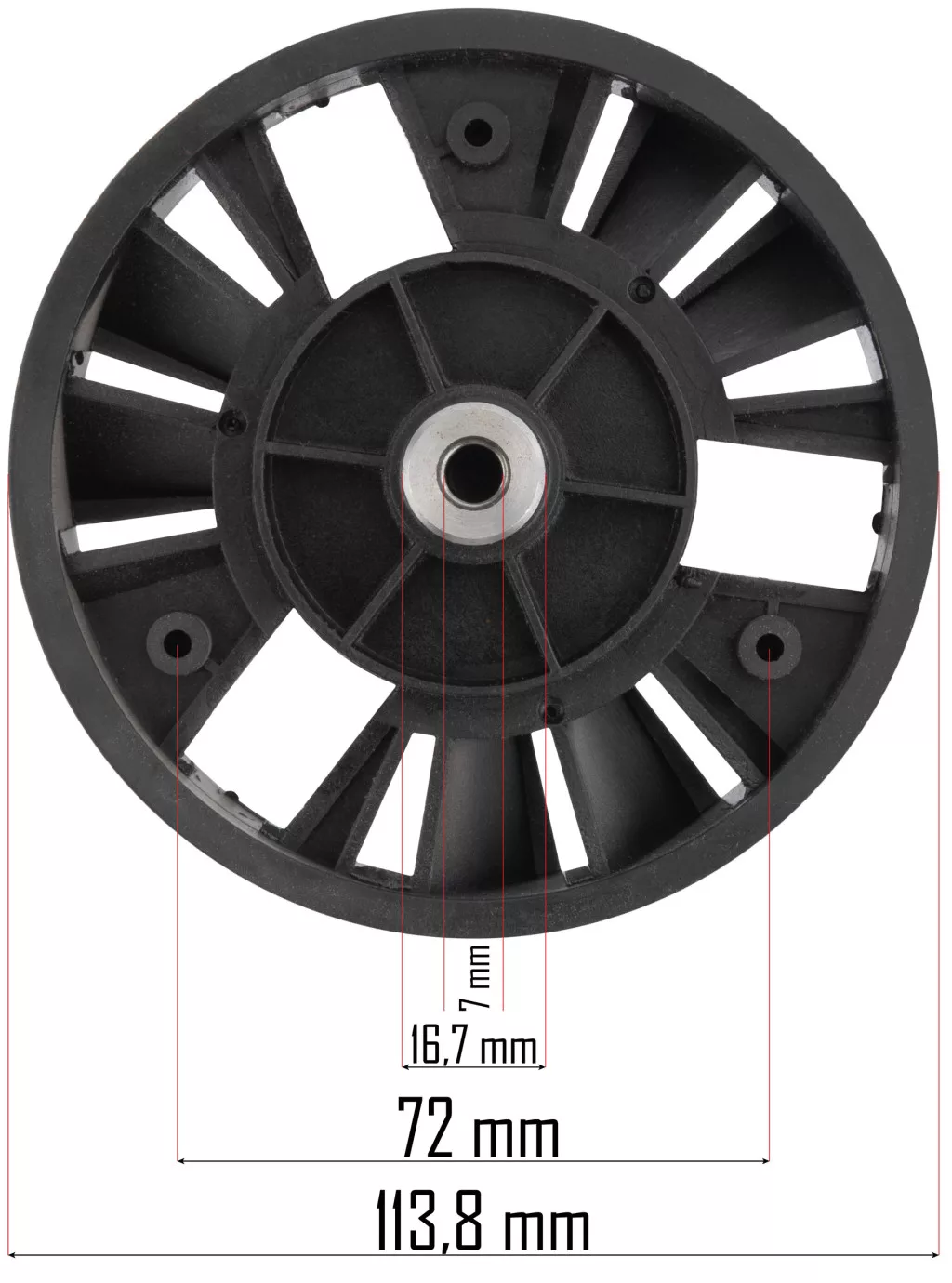 A tárcsa kiváló minőségű, strapabíró anyagokból készült, amelyek ellenállnak a fűnyírás során fellépő mechanikai igénybevételnek és a hőingadozásnak. A precízen megmunkált, 8,8 mm-es mart rögzítőfurat biztosítja, hogy az alkatrész stabilan üljön a tengelyen, megakadályozva a nem kívánt elmozdulást munka közben.