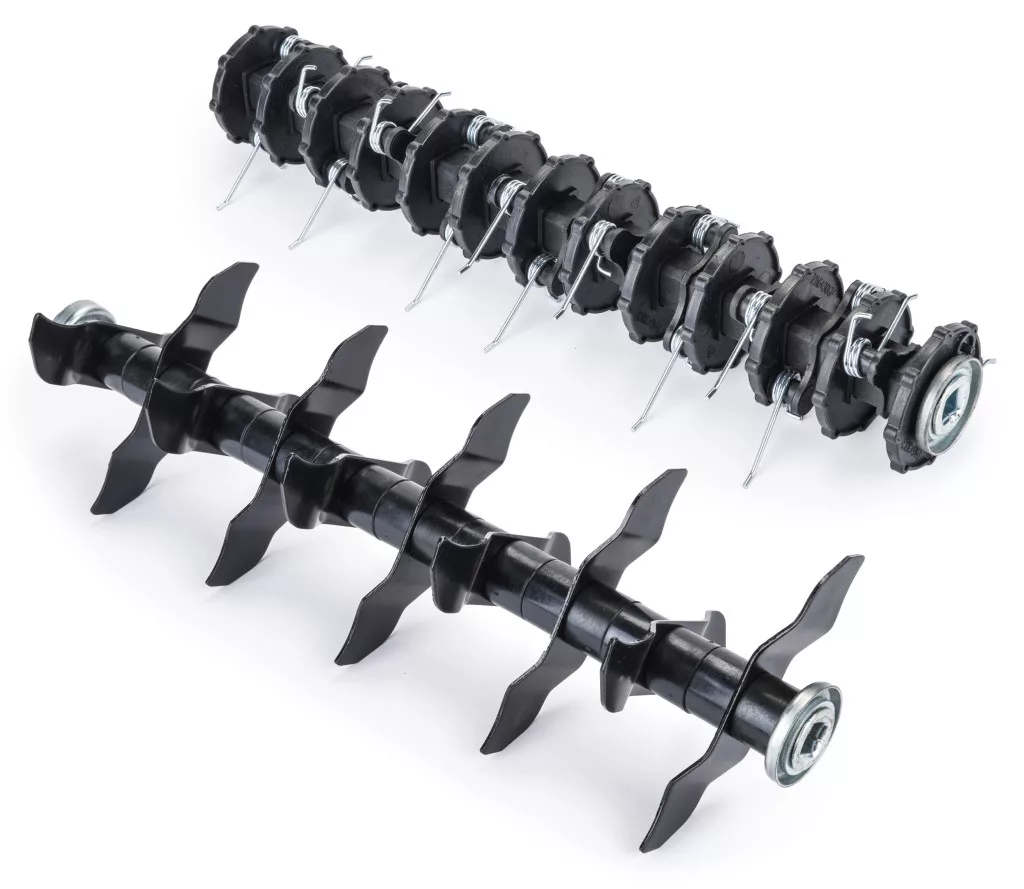 A 20 késes talajlazító és a 24 rugós szellőztető henger egyszerűen, két csavarral cserélhető.